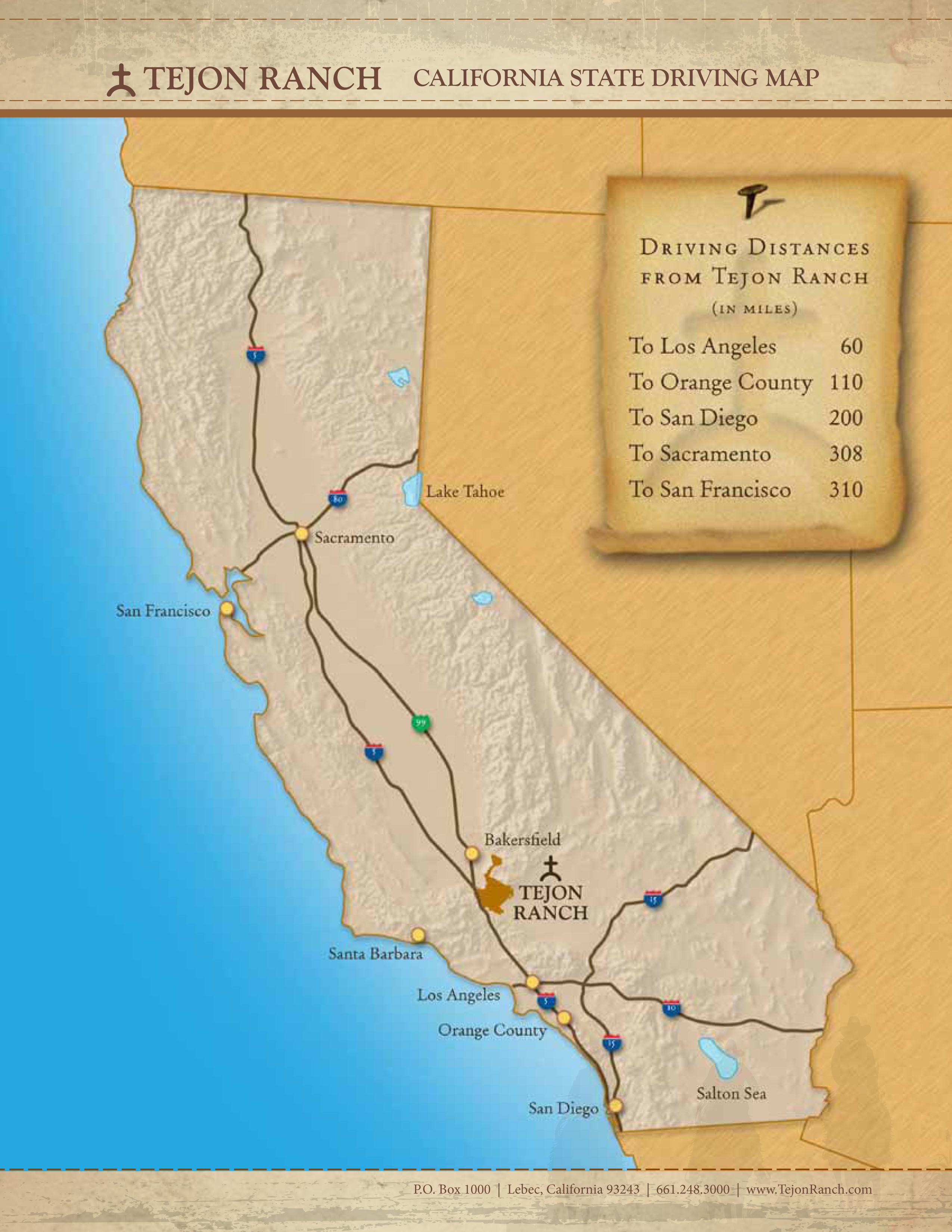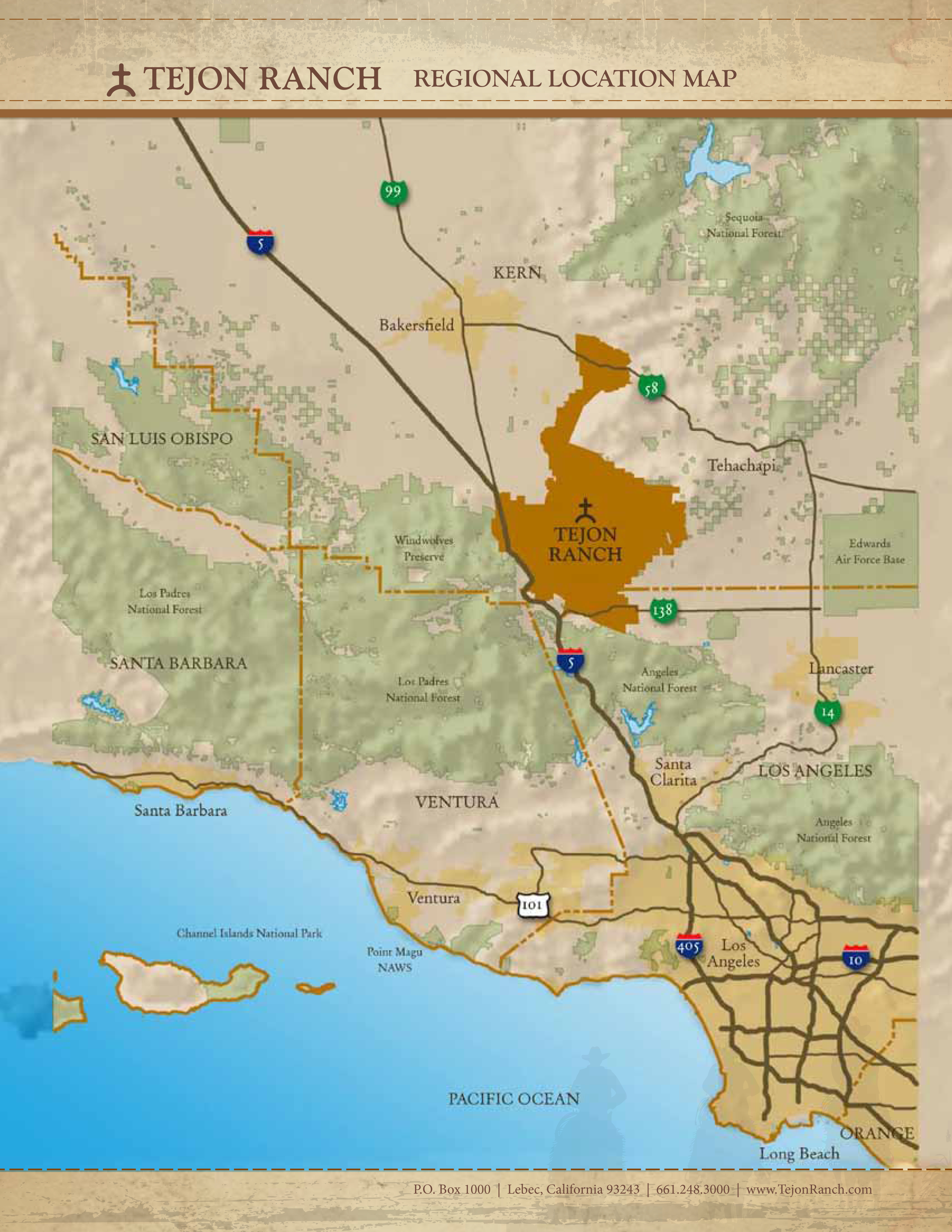 This first map is to show you "where we are" in the state of California. Tejon Ranch is the largest landholder in California and plays a major role in the history of our area.