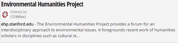 And here are links to help you in developing an environmental humanities focus to your artistic creation.